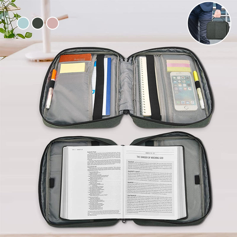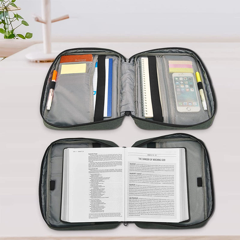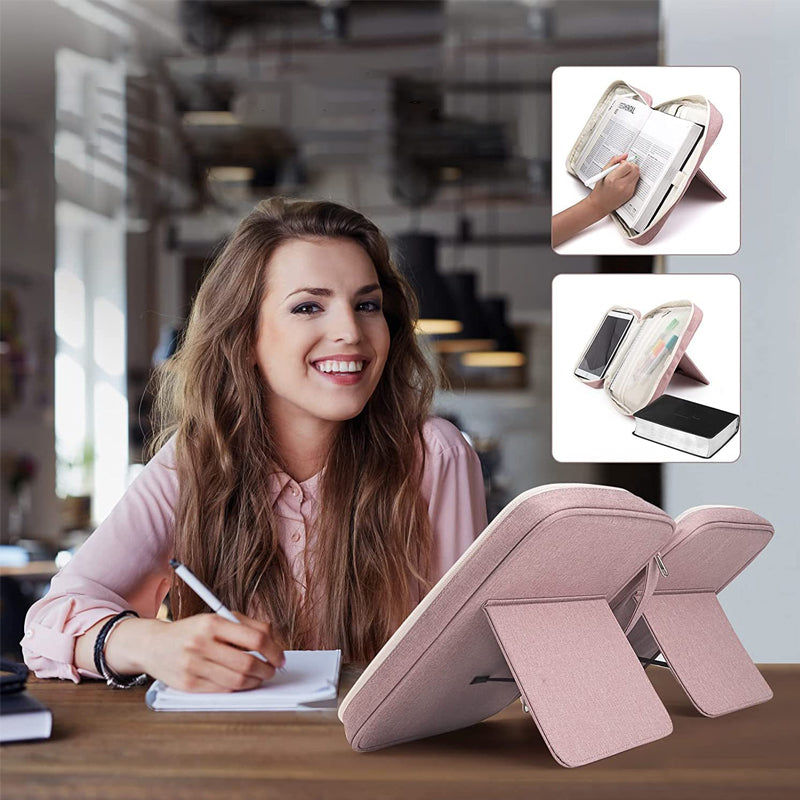 • Bible Cover with Book Stand - This bible bag creativly adds book holder and two bookmark elastic band. You can stand your bible up to read and take notes in good fixation. Enhance your reading experience, soothe your neck and reduce fatigue.