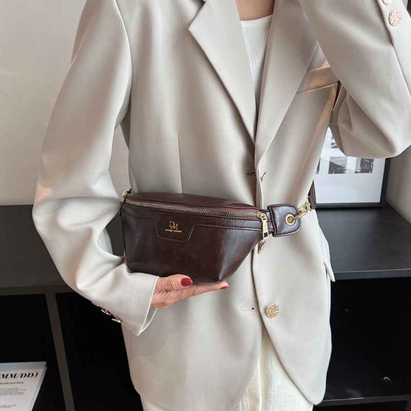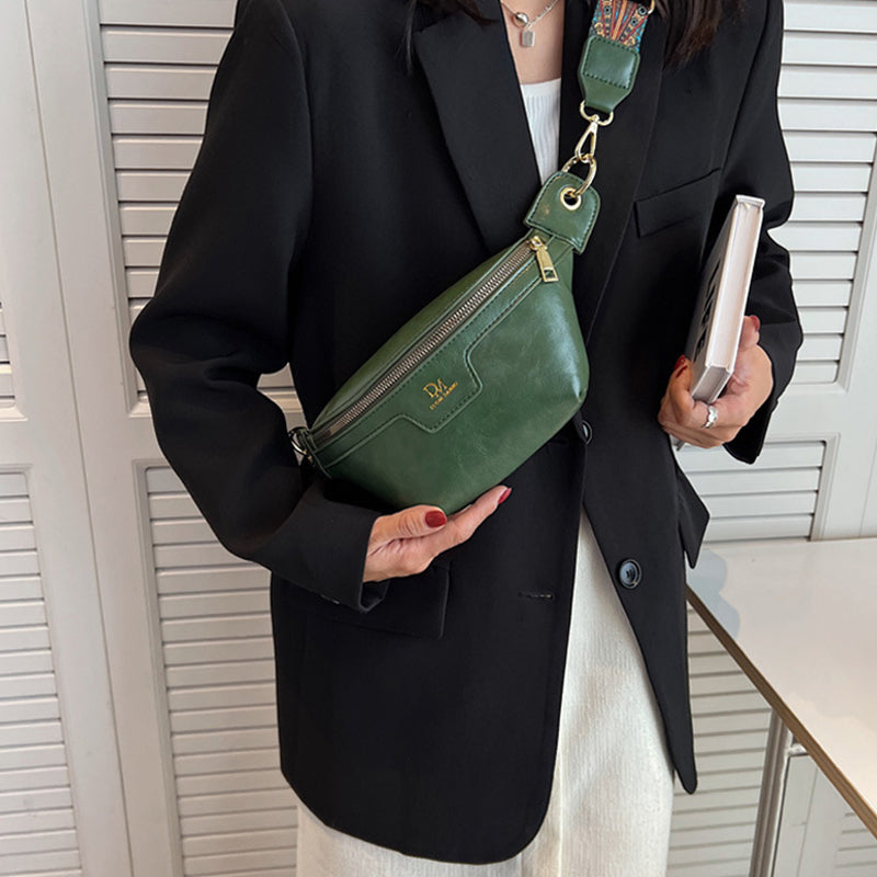 - 1* Retro Leather Wide Strap Waist Bag