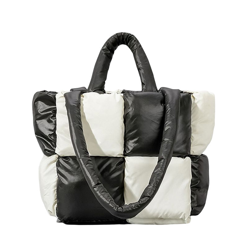 UNIQUE DESIGN: This tote bag has a unique and chic shape inspired by the plaid style duffle coat. It mimics the silhouette and details of a down jacket, adding style and personality to your look.