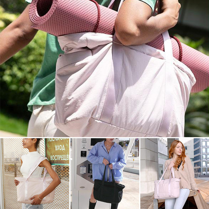 Yoga Mat Strap Included: Effortlessly bring your yoga mat along with the built-in buckle, making it ideal for yoga classes or gym sessions. With durable zippers, easy to slide and working smoothly.The women tote bag with sturdy handle for easy carry.
