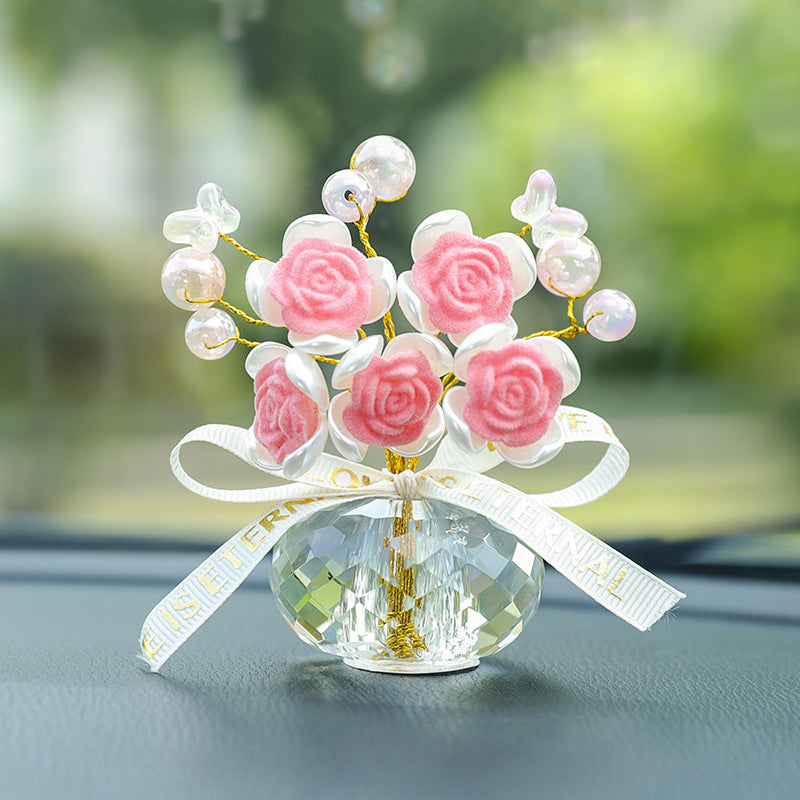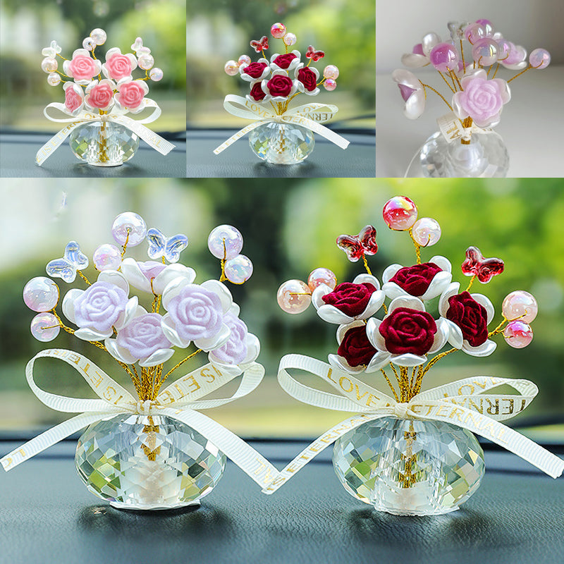 Potted Rose Car Decoration.Crystal base arecarefully cut can perfect sun catcher, rainbow in the sun.