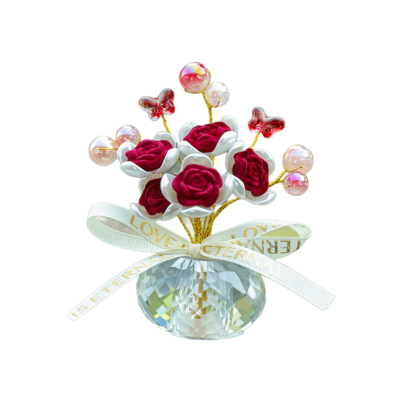 The small crystal base artificial rose bouquet is abeautiful handicrafts,can be used as photographic props,crystal rose jewelry, flower ornaments ,handmade crysta!crafts and art collections.