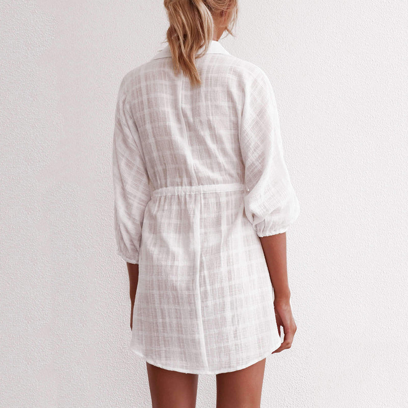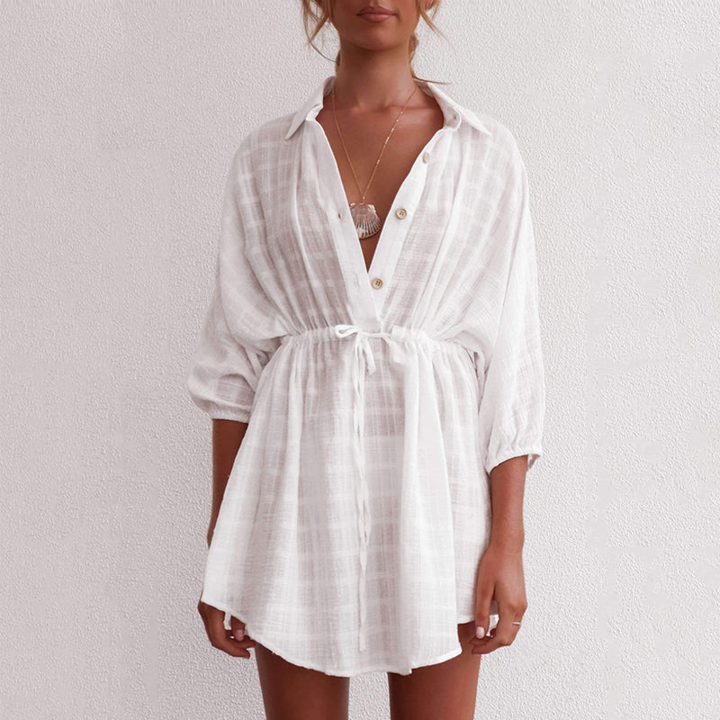 - 1* Lapel Single-Breasted Pumped Beach Dress