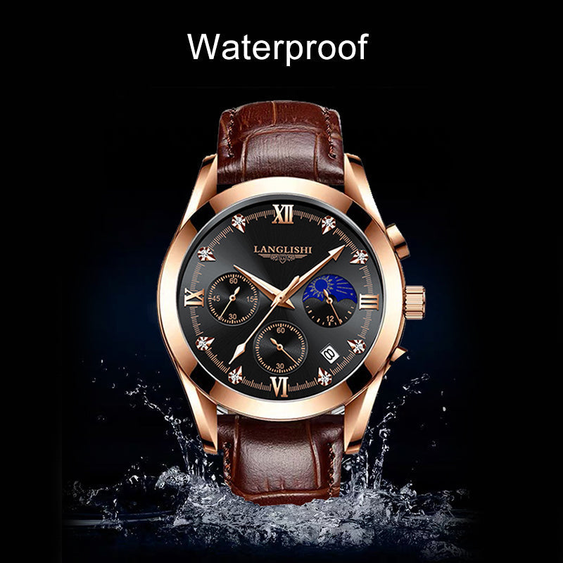 50m Waterproof: The watch can withstand daily splash or short immersion in water, and you can wear the watch to travel, but not showering, swimming , diving or snorkeling.