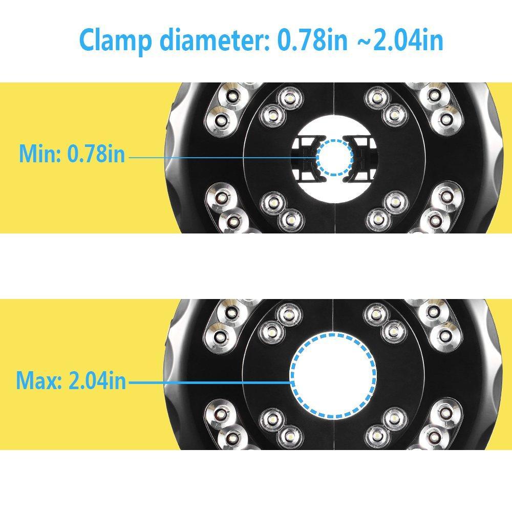 - Simply Installation, Cordless design with built-in flexible auto adjustable clamp, no tools required, just need to clamp to your sunshade, Pole mounted fit pole size from (0.78in to 2.04in) in diameter, suitable for most patio umbrellas.