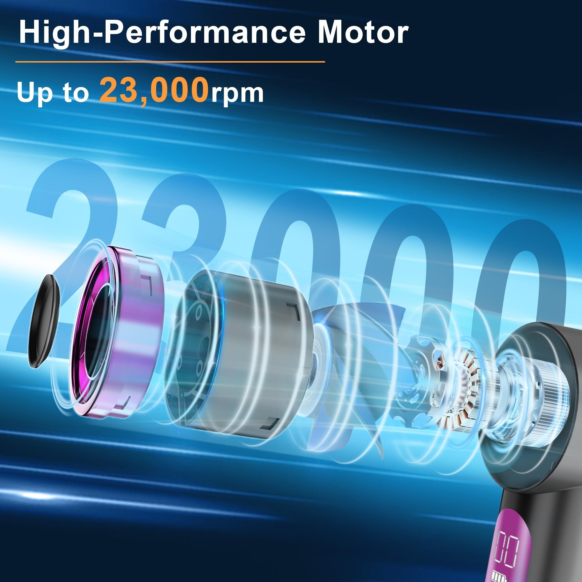 ✨ Powerful Performance:Equipped with a high-performance motor (up to 23,000 rpm!) and turbine-structure fan blades, this fan delivers a cooling breeze at 13.5m/s—fast, efficient, and refreshing! 🚀