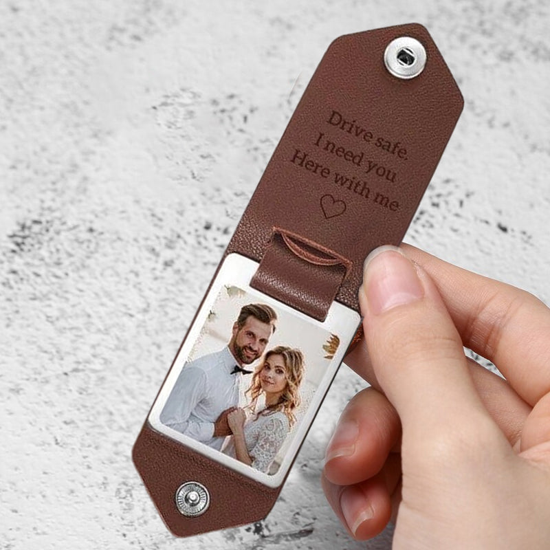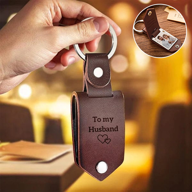 This metal and leather photo keyring makes the subtle yet stylish heartfelt Christmas, Father's Day, or birthday gift from a woman to man.