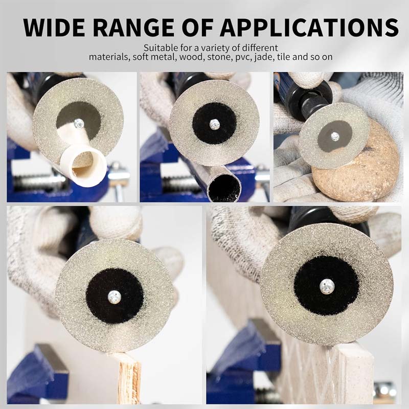 • WIDE RANGE OF USES - These 40mm diamond cutting wheel are great for a variety of jobs such as modeling. Diamond cutting discs are mainly used for cutting agate gemstones, rocks, PVC, glass, ceramic alumina tubing, glass tile, ceramics, tile seams, aluminum and copper. Also great for polishing the edges of ceramic tiles. Note that they are not recommended for quartz and pertafied wood.