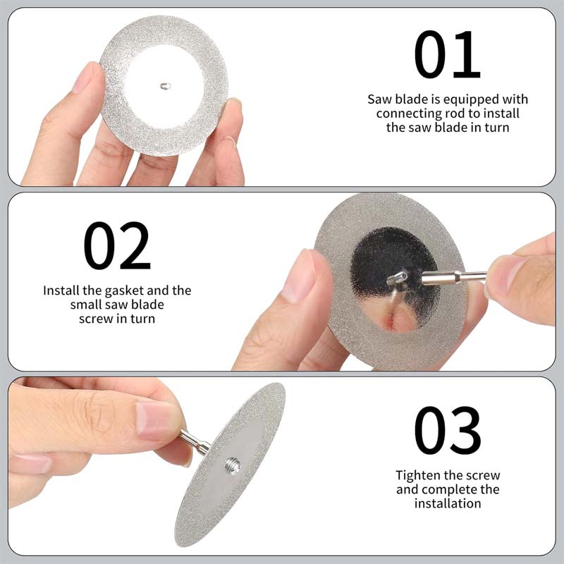• SIZE-- The rotary tool cutting discs diameter: 40mm(1.57inch), Note the size is mini. Thickness: 0.6mm, Mandrel Diameter: 3mm 1/8inch. You get si fang 10pcs diamond cutting discs with 1/8” mandrels for dremel rotary tool. They are a great tools as well as perfect gift for DIY hobbyists.