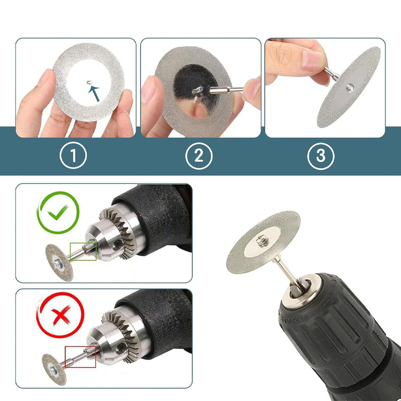 • DESIGNED FOR ROTARY TOOLS -- This diamond glass cutting wheel cutoff disc is suitable for 1/8" rotary tools, cordless drills and air tools. Turns rotary tools into high speed cut-off saws and grinders. Note that the rod diameter is 3mm, not 3.18mm.