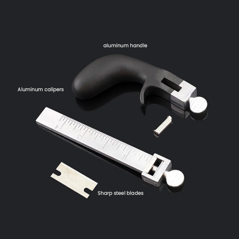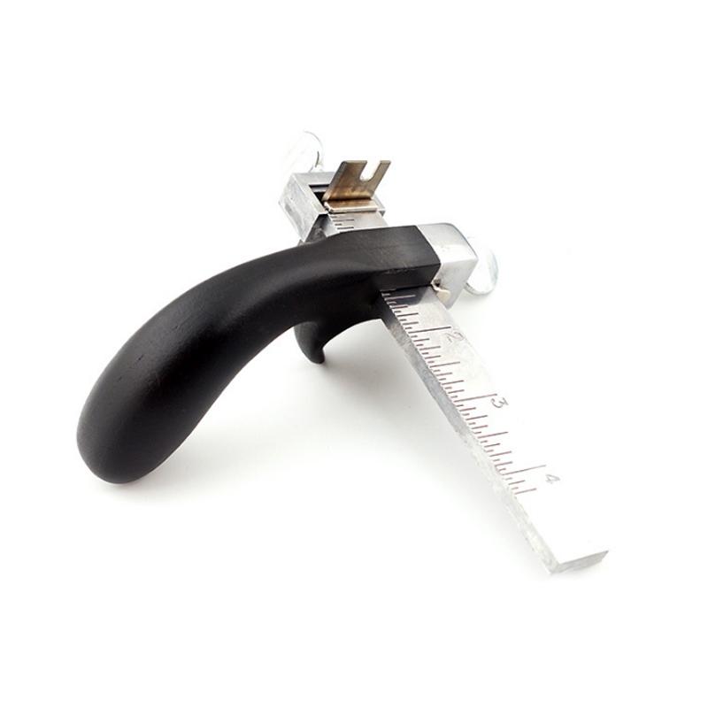 Professional model tool with aluminum handle for cutting strips of leather up to 4" width.