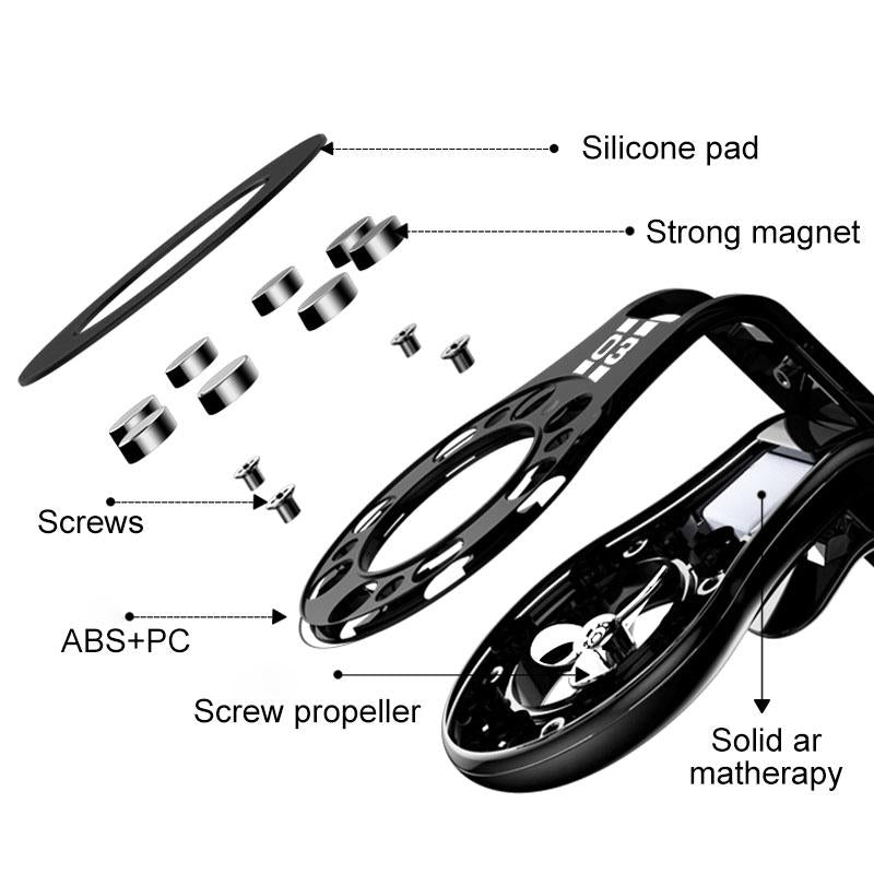 • Product specifications: Magnetic mobile phone holder is made of high-quality ABS + PC material, with strong magnetic attraction function, and also built-in aromatherapy box. The propeller can make the car fragrance everywhere, not including aromatherapy tablets