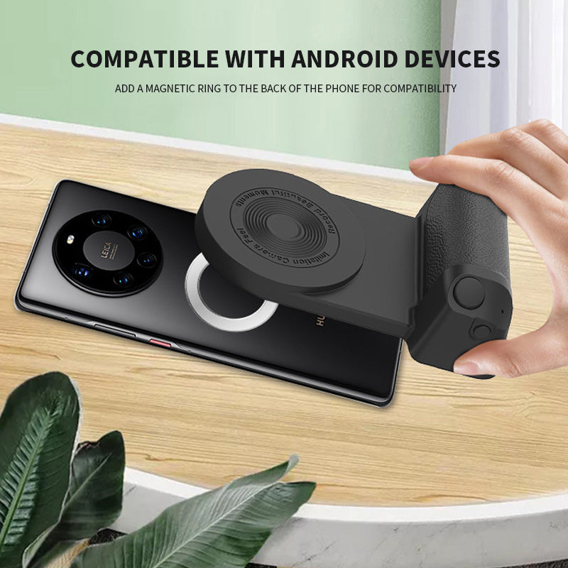 The magnetic holder fits all phones, both Android and iPhone, and allows you to take photos and videos in total comfort.