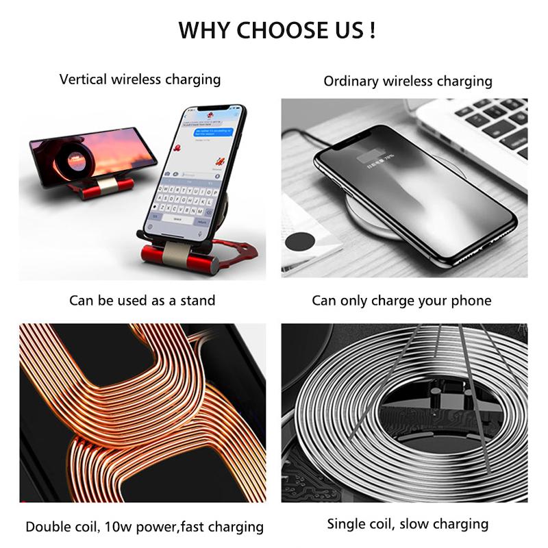 - 【Wireless charger】 - absolute eye-catcher. Cool futuristic design, LED light, paired with the latest wireless 10W fast charging technology. With stand function and adjustable viewing angle, you can watch movies while charging your phone.