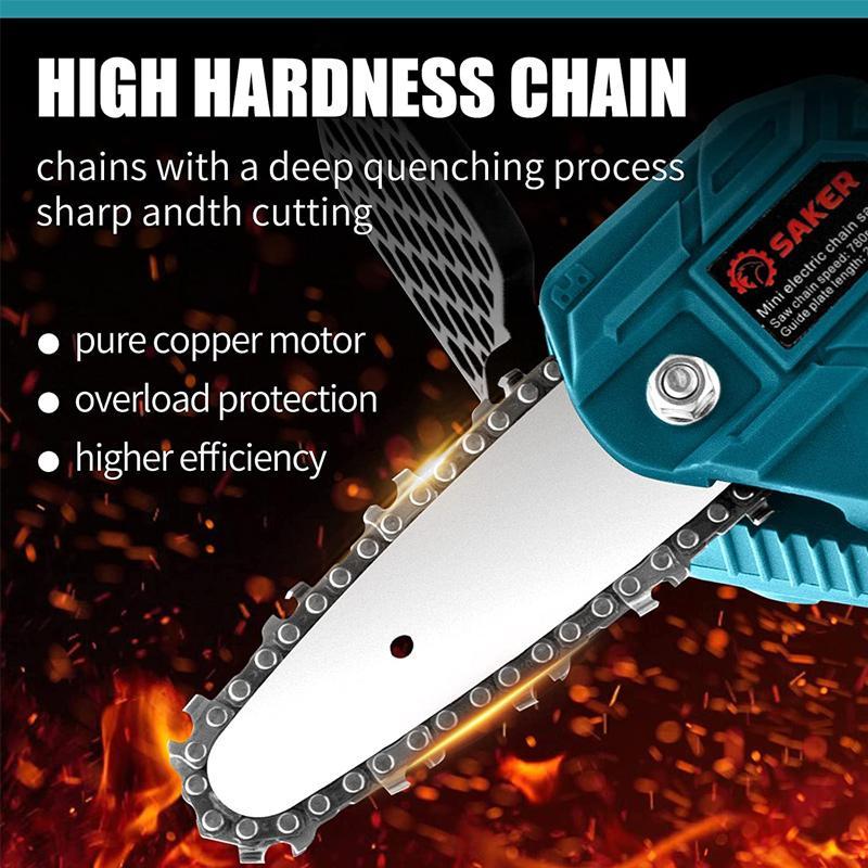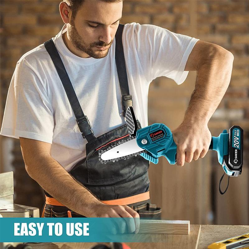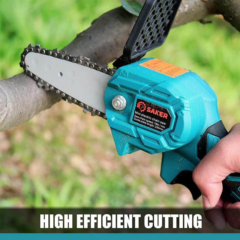 Working with conventional pruners, hand saws, or big chainsaws is tiresome and puts a lot of pressure on your back. The size & weight of the Chainsaw make it extremely easy to handle, thus eliminating harmful strain from your spine.