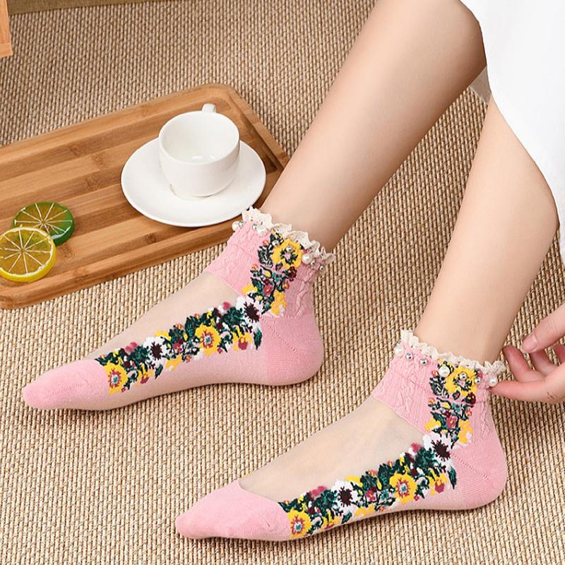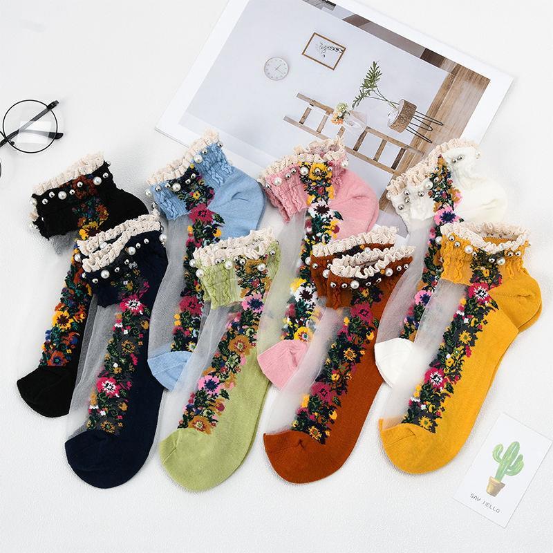 Package: 1 pair of Summer Breathable Vintage Pearl Socks