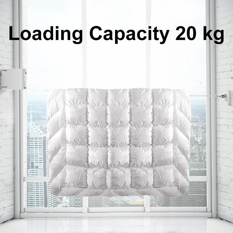 • Easy to dry; about 20kg load; resistance device; 180° rotation; waterproof material; free telescopic.