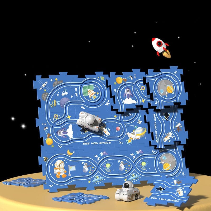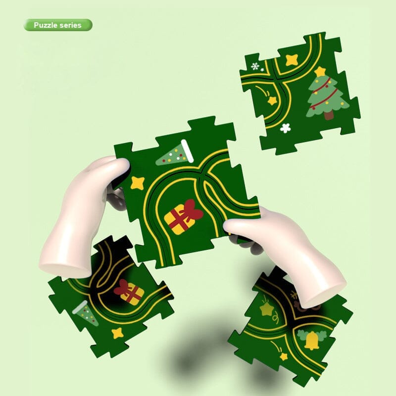 Fun Jigsaw Puzzles: This children's puzzle set includes 12 puzzle pieces, 1 car, and requires 1 AAA battery (not included), which can encourage children to innovate and create unique track layouts.