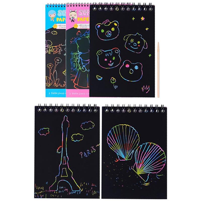 - Scratch Art Paper - including art notebooks(28*20cm), 1 drawing pen. Each notebook has 10 sheets of scratch paper.
