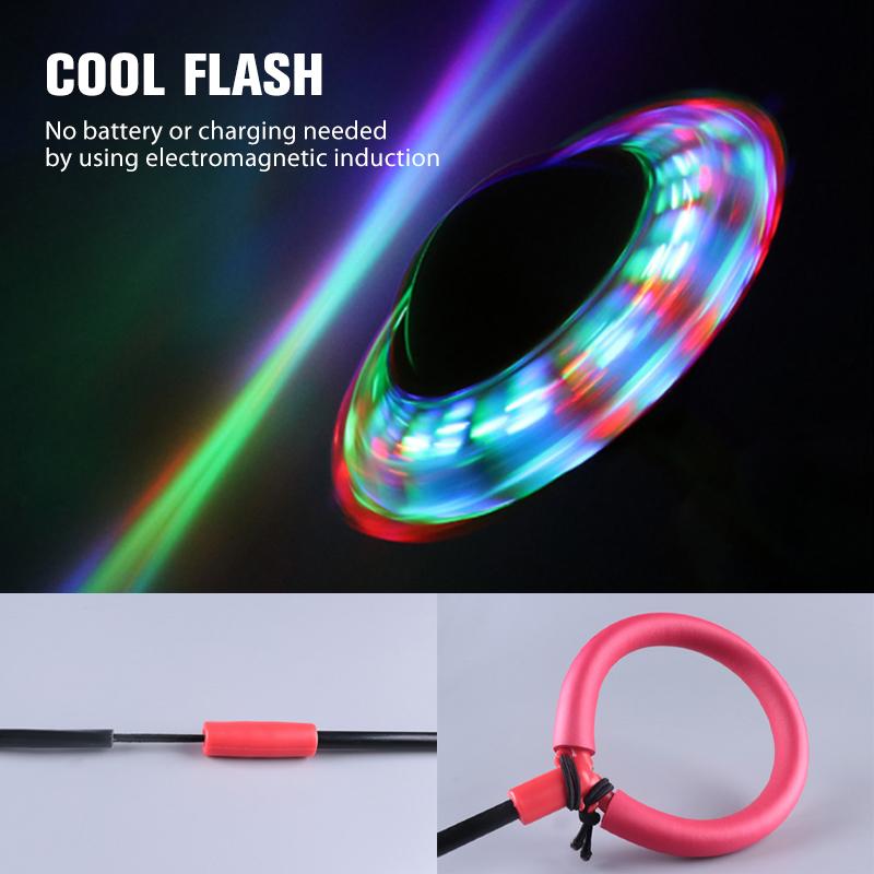 • Built-in Flash Wheel - Every time you skip it, the rotating wheels automatically produces a dazzling multi-color light show. ( NO battery or charging needed by using Electromagnetic Induction)