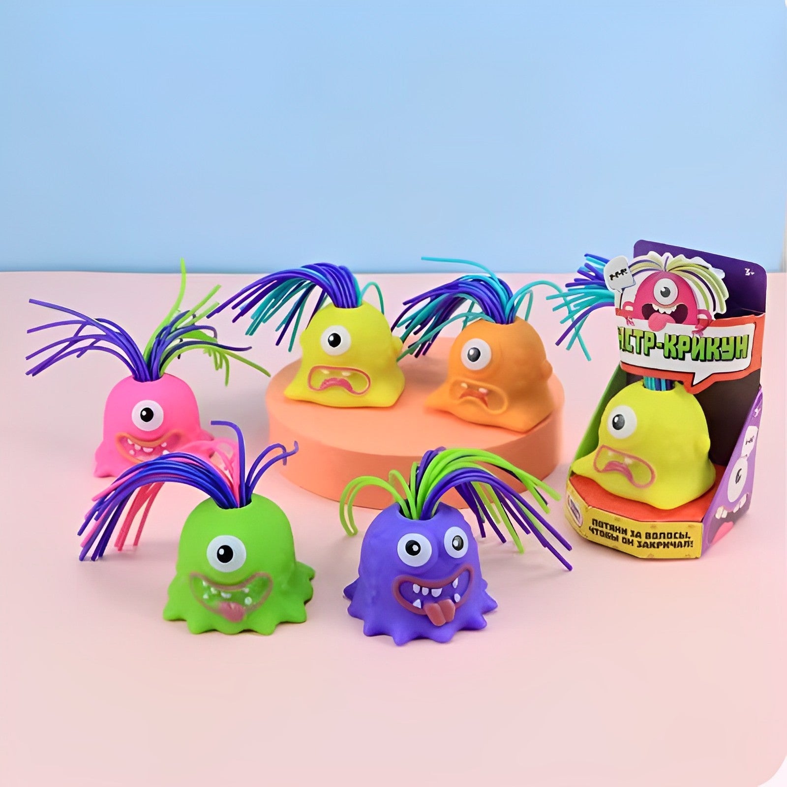 MOST ENTERTAINING TOY - The fidget toys screaming monster toy is an innovative design funny gag joke gifts that can create unbelievable fun for you. This fidget toy monster will make different sounds when you pull its hair. Just pull up and down and enjoy the fun!