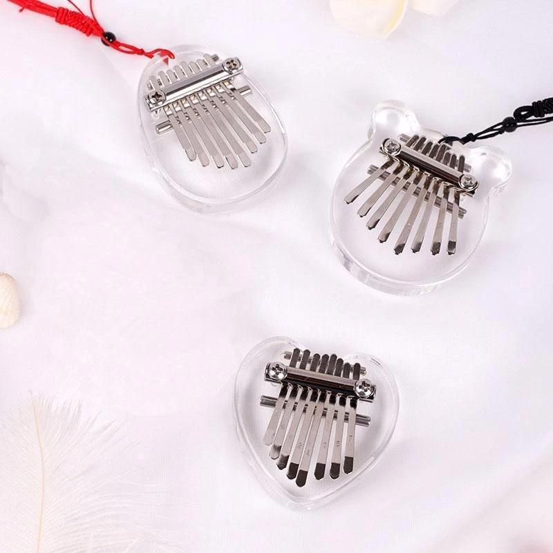 A pendant featuring a thumb harp pouch with eight keys. The keychain is easy to carry, suitable for birthdays, Christmas, Thanksgiving and other occasions